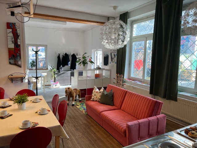 Kleiner Veranstaltungssaal Der kleine Veranstaltungssaal liegt im ersten Obergeschoß an der Nordseite des Hauptgebäudes. Er ist durch die Fensterfronten tagsüber sonnenhell, aber leider nicht barrierefrei erreichbar. Geeignet ist der Raum für Vorträge, Lesungen, Sitzungen oder auch kleinere Feiern. Leider ist dieser Saal nicht barrierefrei. | |